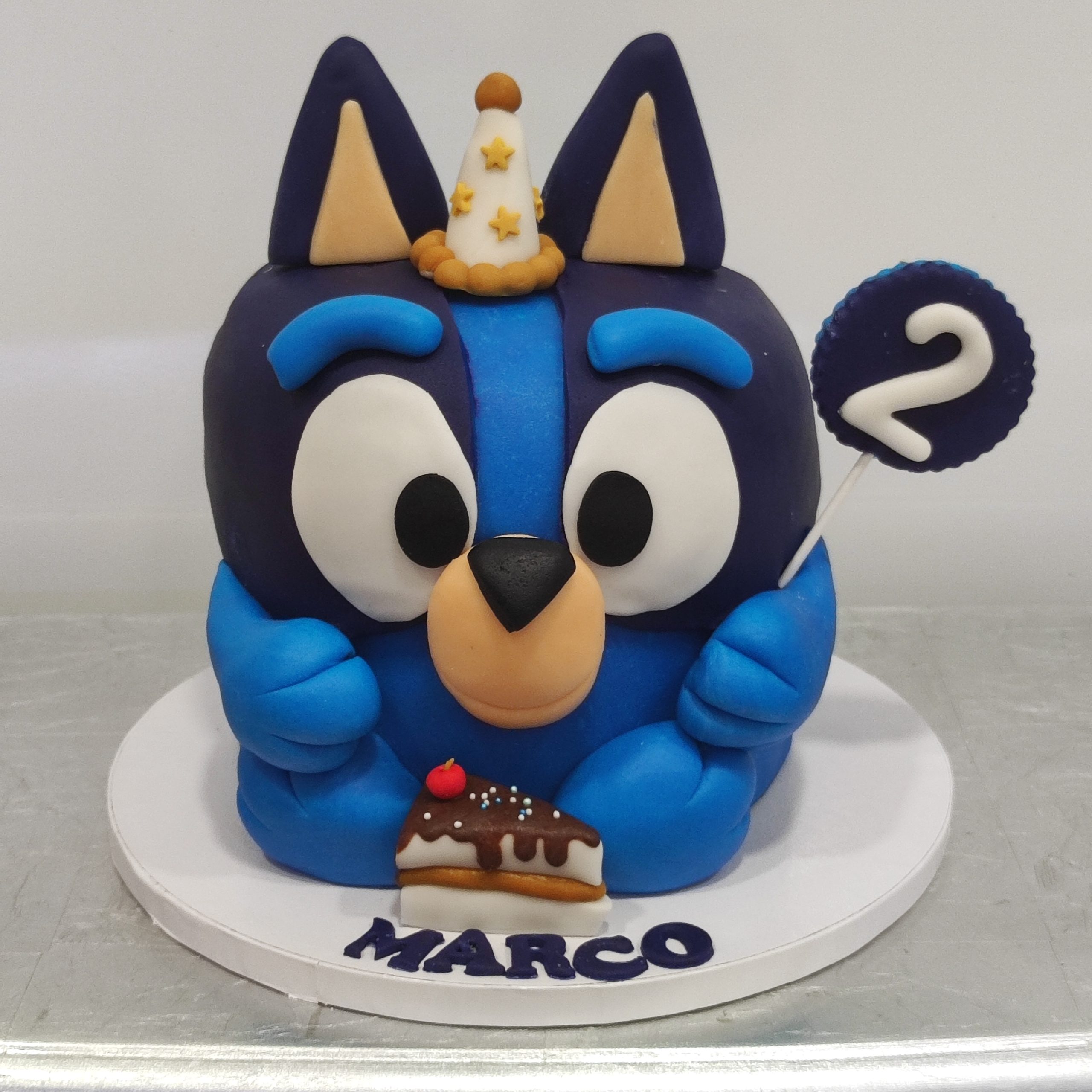Tarta 3d tamaño único para 12 raciones, con la forma de Bluey